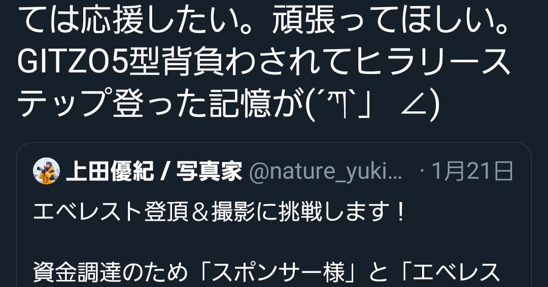 栗城史多さんのこと、山写さんのこともTwitterでも呟かれています。