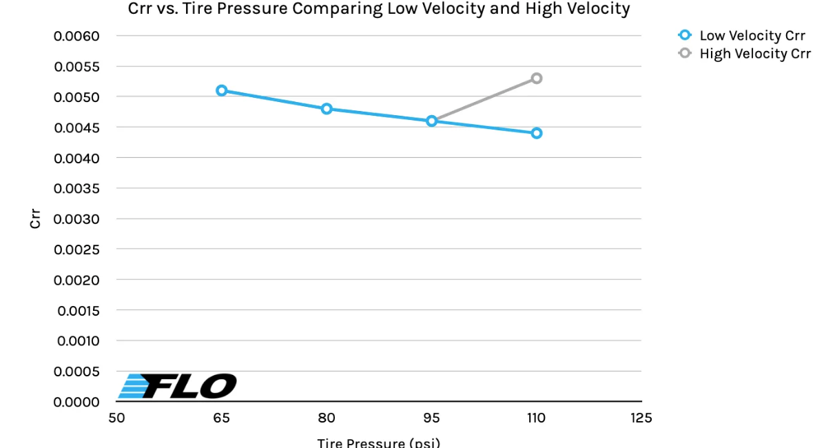 ここではライダーの体重やタイヤの太さが不明ですが、100psiがブレークポイント=変換点となり、それ以上に空気圧を上げても逆に走行抵抗は増えてしまうという実験結果。